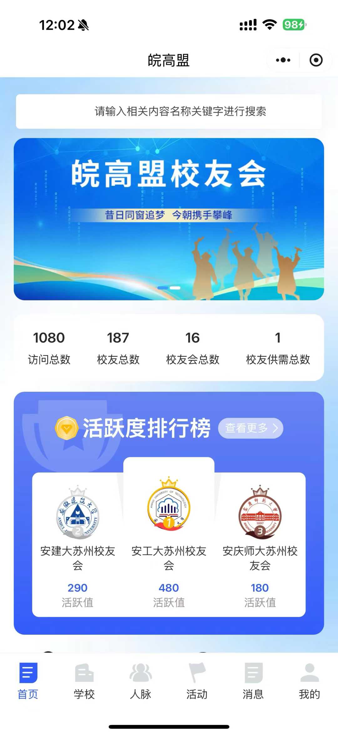 熱烈祝賀安徽省16所高校蘇州校友會(huì)聯(lián)盟小程序即皖高盟正式上線運(yùn)營(yíng)!