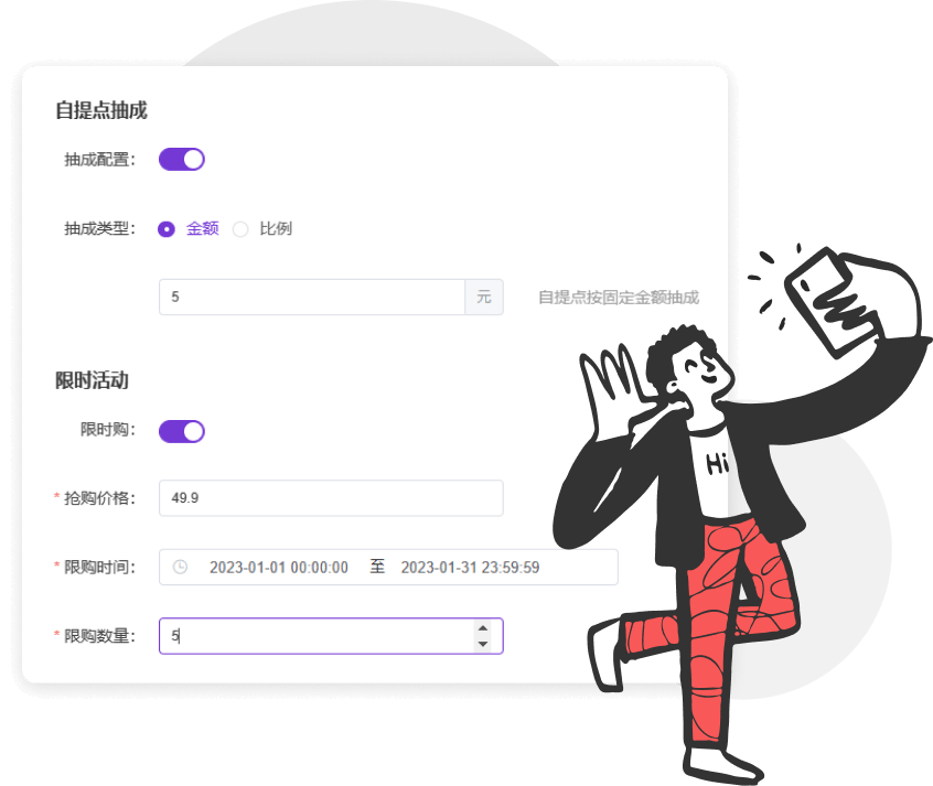 d.抽成明細(xì):可根據(jù)商品金額/實(shí)際支付金額配置自提點(diǎn)抽成方式
